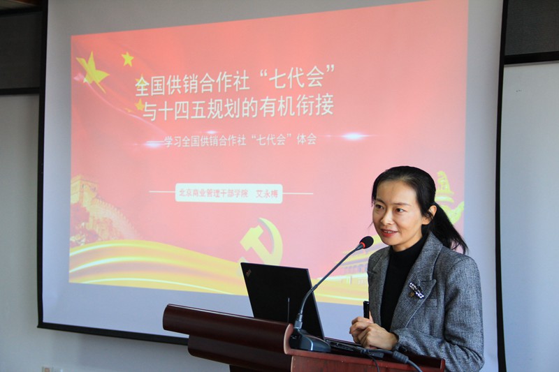培訓(xùn)特邀北京商業(yè)管理干部學(xué)院合作經(jīng)濟(jì)研究中心副主任、副研究員艾永梅授課。艾老師以《全國供銷合作社“七代會(huì)”與十四五規(guī)劃的有機(jī)銜接》為題,主要從“七代會(huì)”背景、“七代會(huì)”精神學(xué)習(xí)體會(huì)以及做好供銷合作社“十四五”發(fā)展規(guī)劃編制等方面進(jìn)行授課,重點(diǎn)解讀了習(xí)近平總書記對(duì)供銷社工作的重要指示、李克強(qiáng)總理批示、胡春華副總理講話以及全國供銷總社“七代會(huì)”精神。作為曾參與并負(fù)責(zé)全國供銷總社十四五發(fā)展規(guī)劃,承接全國多個(gè)省市供銷社發(fā)展規(guī)劃編制任務(wù)的資深導(dǎo)師,艾老師還從提高政治站位、強(qiáng)化使命意識(shí),以新發(fā)展理念、高質(zhì)量發(fā)展為引領(lǐng),強(qiáng)化問題導(dǎo)向、結(jié)果導(dǎo)向和系統(tǒng)思維等三個(gè)方面對(duì)集團(tuán)“十四五”規(guī)劃編制提出了參考建議。