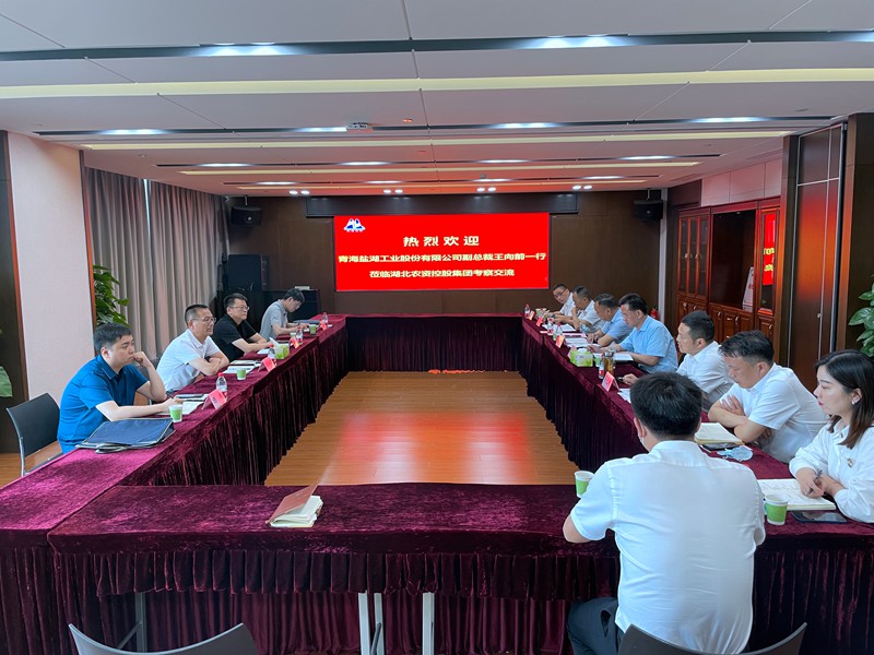 7月8日,青海鹽湖工業(yè)股份有限公司黨委委員、副總裁王向前,銷售分公司黨委書記、總經(jīng)理羅永成一行蒞臨湖北農(nóng)資控股集團(tuán)考察交流。