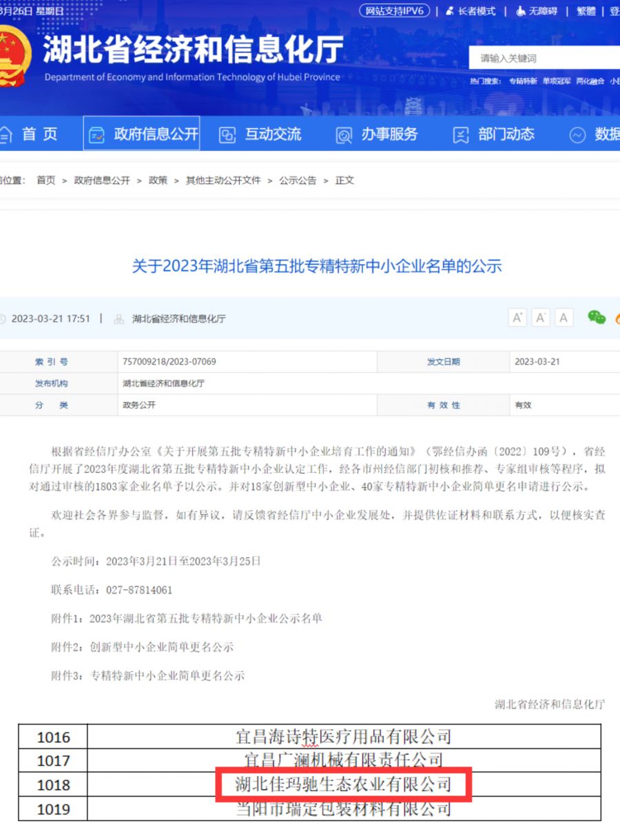 近日,省經(jīng)信廳公布了湖北省第五批專精特新中小企業(yè)名單,農(nóng)資控股集團成員企業(yè)湖北佳瑪馳生態(tài)農(nóng)業(yè)有限公司(下稱:佳瑪馳公司)成功入選。